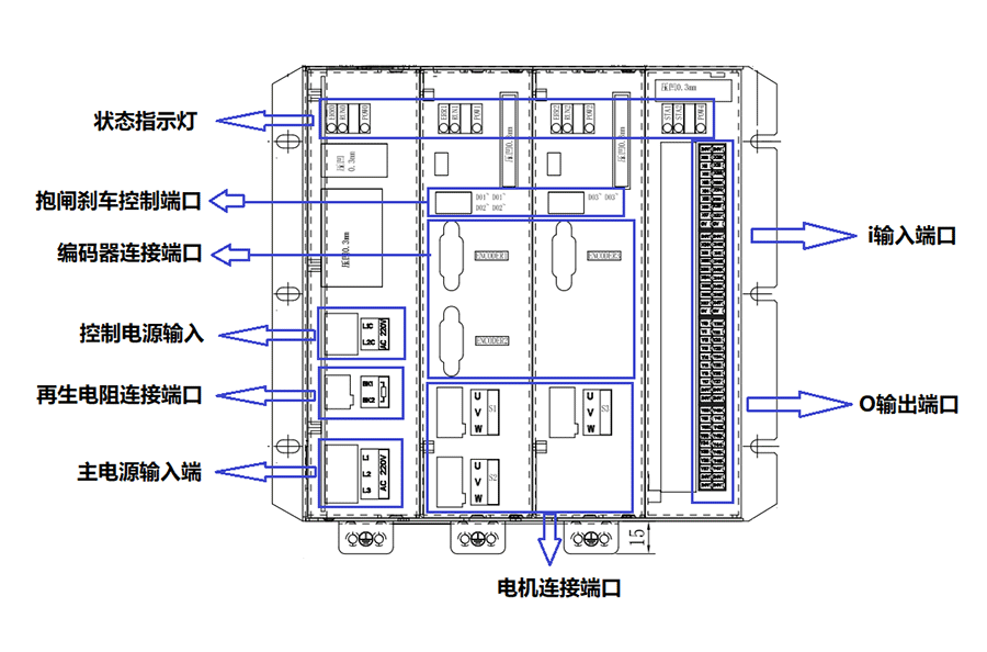 车床机械手控制系统驱控一体——EC-L3,三轴驱控一体车床机械手控制系统箱体整体接线说明: