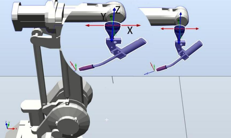 建立了工具坐标系后,机器人的控制点也转移到了工具的尖端点上,这样示教时可以利用控制点不变的操作方便地调整工具姿态,并可使插补运算时轨迹更为精确。