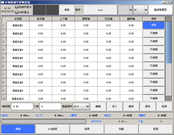 冲压机械手控制系统为九州酷游(ku游)系列摆臂旋转式冲压系列机械手控制系统,系统在运行中堆叠的教导如下: